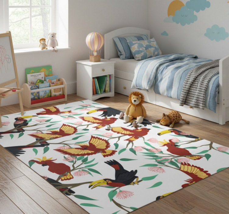 Alfombra vinílica animales loros y tucanes voladores