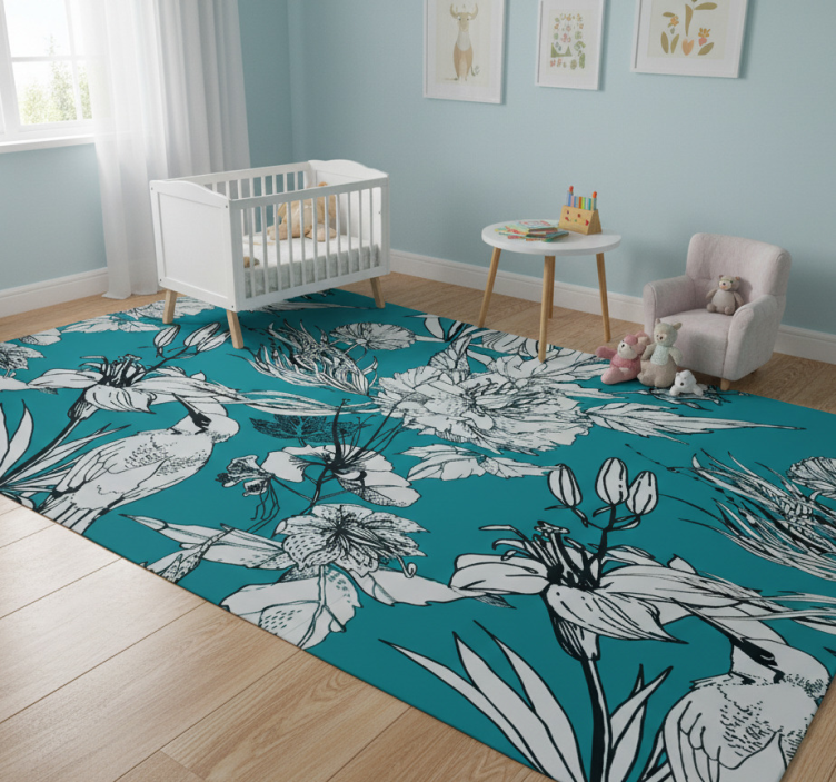 Alfombra vinílica animales patrón elegante aves blancas
