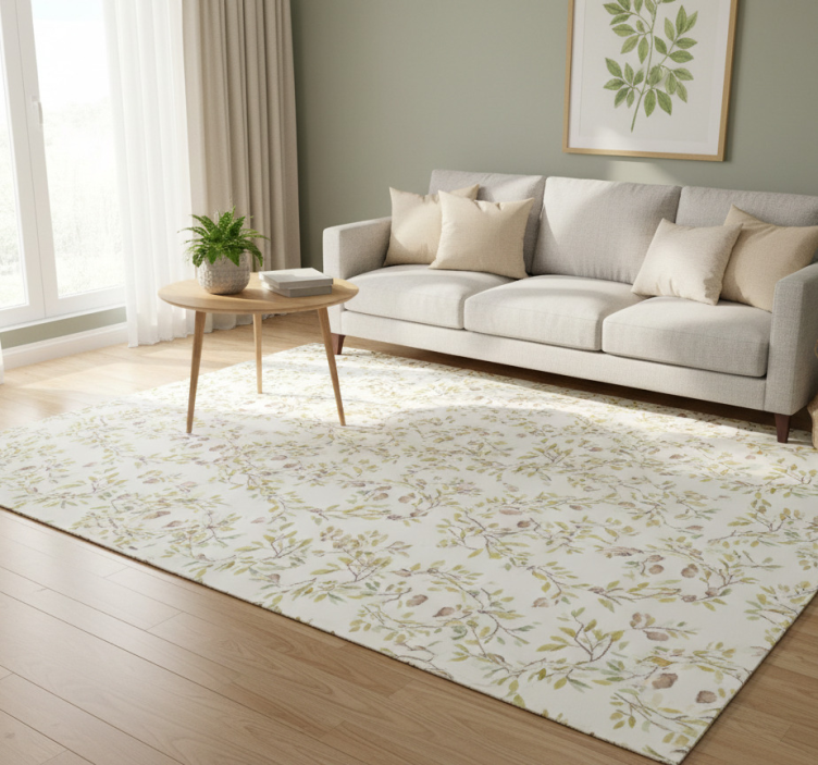 Alfombra vinílica flores diseño acuarela hojas verdes