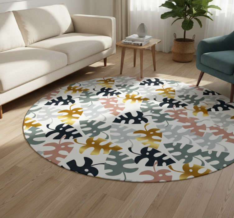 Alfombra vinílica flores hojas doradas y multicolores