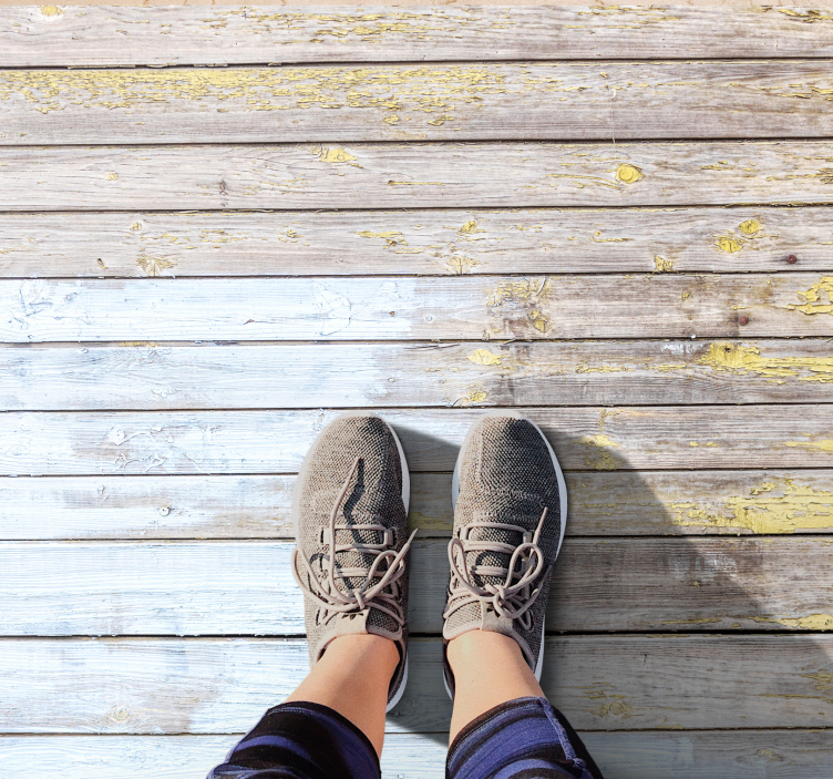 La alfombra vinílica imitación madera superficie envejecida es una pieza única que transforma cualquier espacio con su diseño rústico. Con una apariencia que evoca tablones de madera envejecida, esta alfombra presenta una textura que simula la madera afligida en tonos beige y amarillo, añadiendo un toque acogedor y natural a tu hogar.