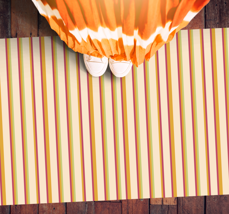 La alfombra vinílica rayas elegancia multirayas es un verdadero espectáculo visual. Con un diseño vertical que juega con líneas y rayas en tonos vibrantes como el amarillo, rojo, verde y beige, este patrón aporta un toque moderno y sofisticado a cualquier espacio. Su estampado único transforma el ambiente, invitando a la calidez y el estilo en cada rincón de tu hogar.