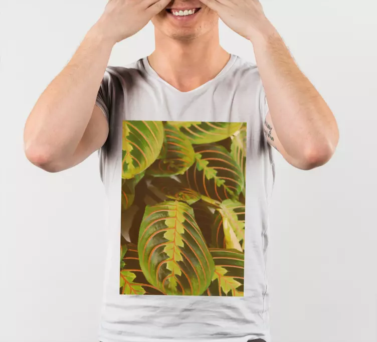 Referencia: T880Camiseta personalizada con estampado de hojas de maranta