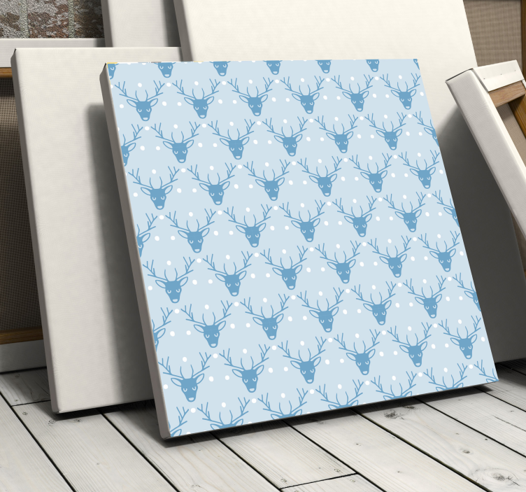 Descubre nuestro Cuadro ciervos patrón de ciervos invernales, una hermosa ilustración que captura la esencia de la Navidad en un diseño cautivador. Con cabezas de ciervos y renos rodeados de un mágico paisaje nevado, este estampado en tonos azules es perfecto para llenar tu hogar de calidez y alegría durante las festividades.