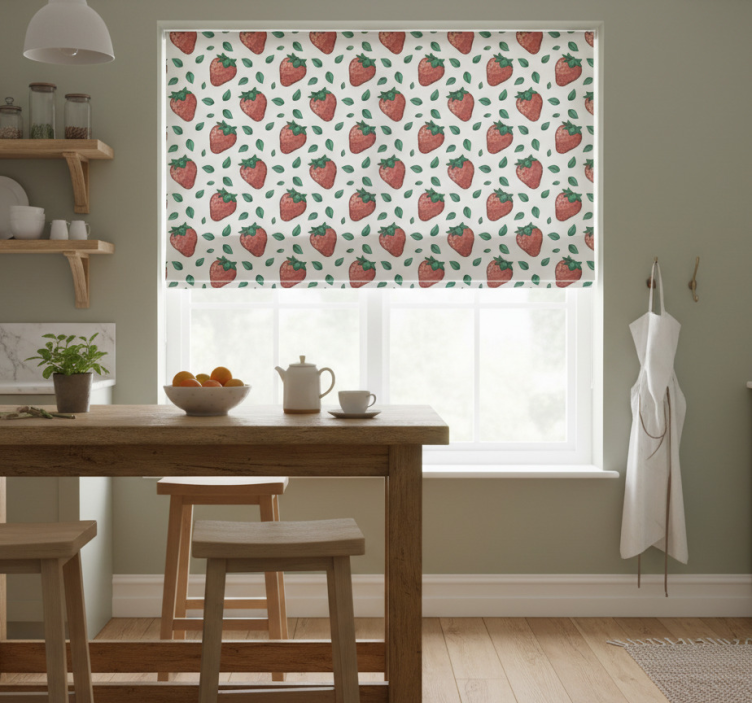 La cortina roller cocina fresas brillantes y hojas verdes no solo embellece, sino que también crea un ambiente acogedor y alegre en tu cocina. Su diseño animado invita a la creatividad y hace que cada comida sea especial. Al incorporar esta cortina en tu decoración, transformas tu cocina en un espacio lleno de vida, ideal para disfrutar con familiares y amigos. ¡Es perfecta para dar un nuevo aire a tu hogar!