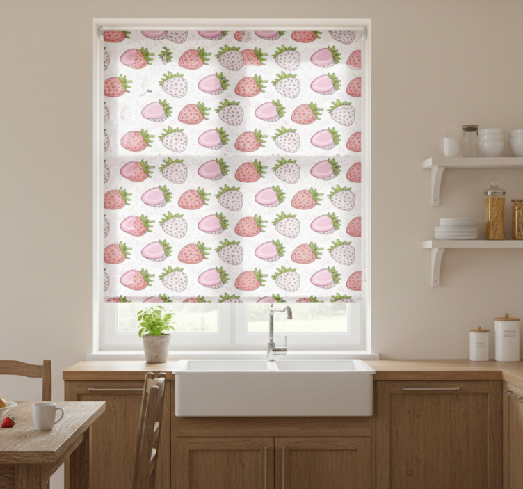 Cortina roller cocina fresas rosas y rojas