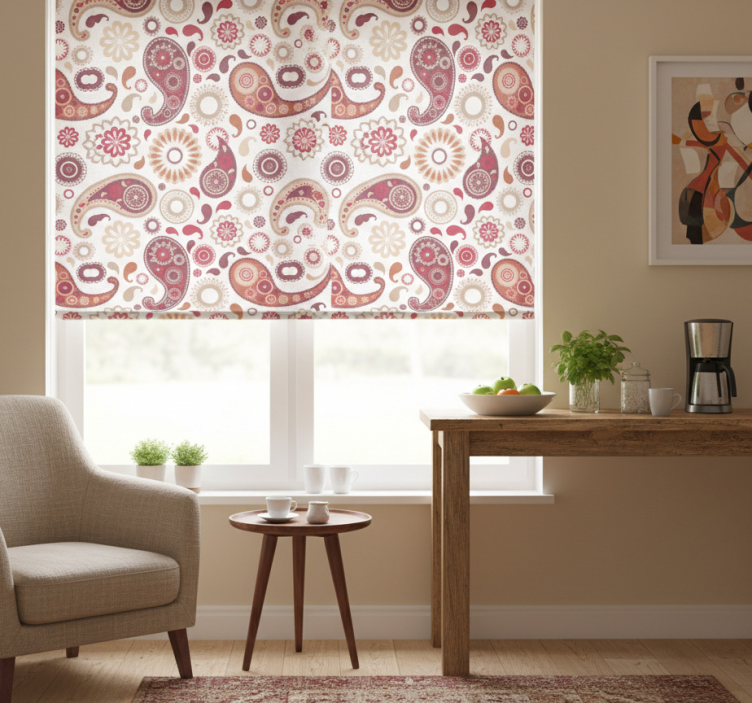 Referencia: E6463La Cortina roller cocina motivo paisley blanco es una opción encantadora para tu hogar. Su diseño presenta un hermoso motivo paisley en un elegante fondo blanco, lo que la convierte en un elemento decorativo que aporta frescura y estilo a cualquier cocina. Este diseño no solo es visualmente atractivo, sino que también crea un ambiente acogedor y moderno en tu espacio.
