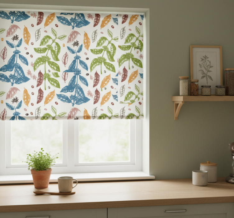 Cortina roller cocina patrón colorido de café
