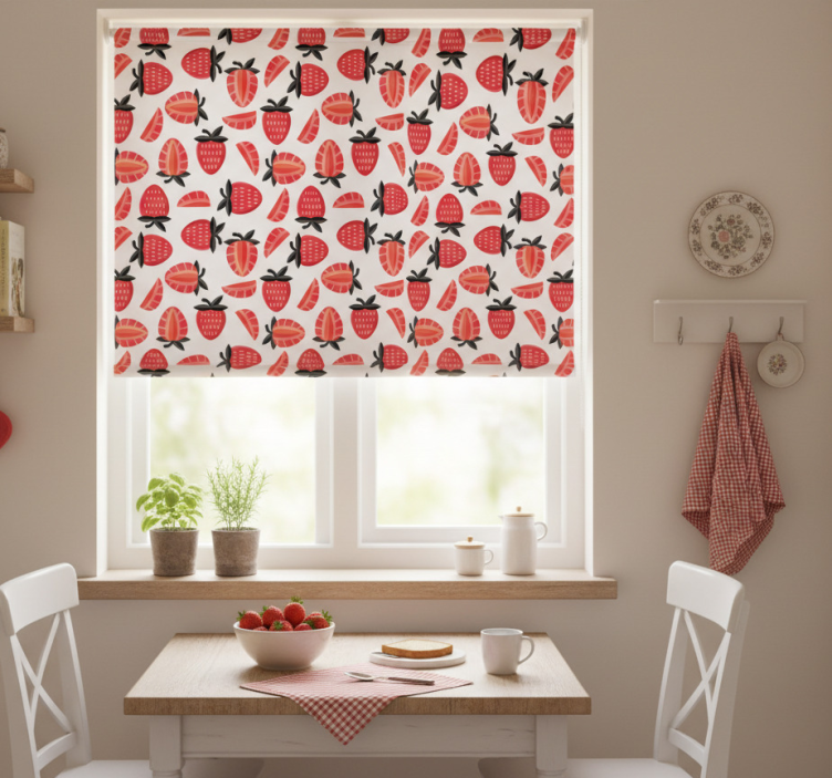 Cortina roller cocina patrón de fresas rojas realistas