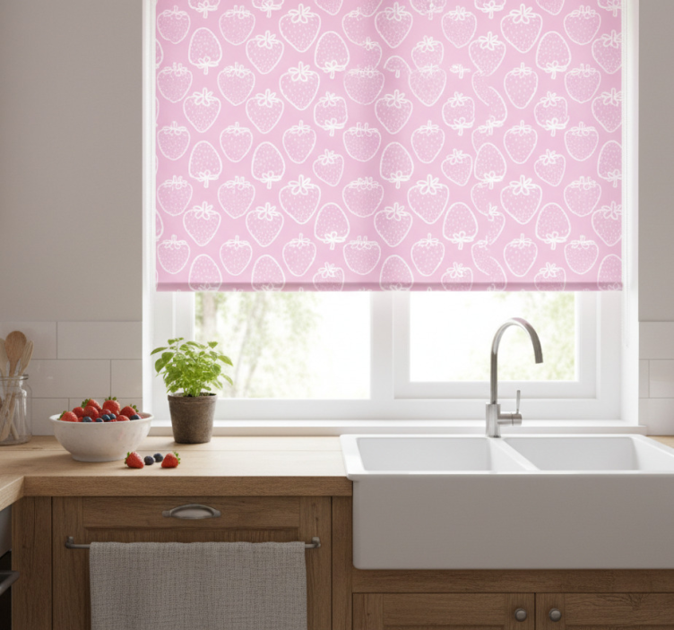Referencia: E6423Transforma tu cocina con la Cortina roller cocina patrón de fresas rosas, un diseño encantador que combina frescura y estilo. Con un hermoso patrón de fresas en tonos rosas, esta cortina no solo embellece tu espacio, sino que también trae un aire alegre y acogedor. Ideal para cualquier decoración, su diseño vibrante iluminará tus momentos en la cocina.