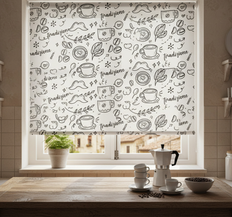 Cortina roller cocina tradición italiana con café