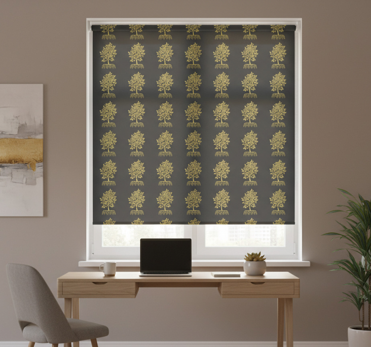Cortina roller despacho contorno de árboles dorados