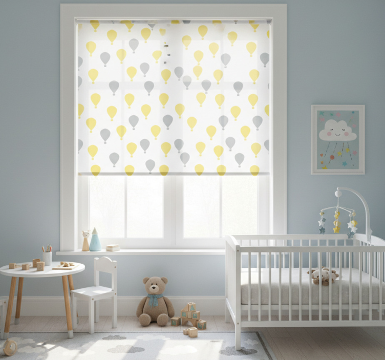 Cortina roller infantil patrón de globos aerostáticos
