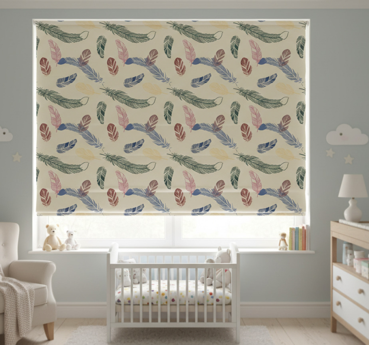 Cortina roller infantil plumas de colores