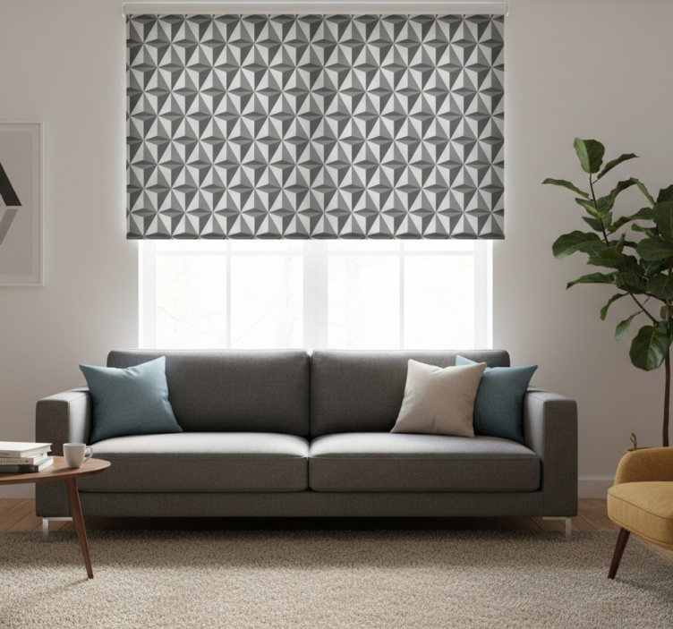 Referencia: E7688Descubre la elegancia de la cortina roller moderno azulejos triangulares oscuros, una pieza que transforma cualquier espacio con su diseño gráfico que combina patrones de azulejos triangulares en tonos oscuros, creando un ambiente contemporáneo y sofisticado. Esta cortina no solo es un elemento decorativo, sino también funcional, ideal para quienes buscan un toque de modernidad en su hogar.