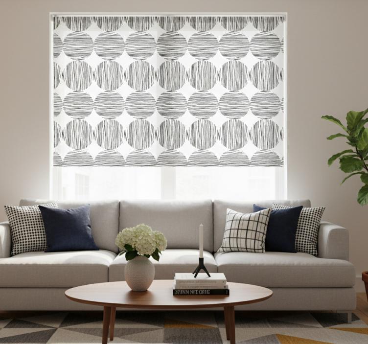Referencia: E7702Descubre el estilo contemporáneo y la elegancia de nuestra Cortina roller moderno círculos con rayas interiores. Este diseño único combina círculos llamativos con rayas interiores sutiles, creando un efecto visual que transforma cualquier espacio en un ambiente acogedor y moderno. Su estilo se adapta a cualquier decoración, brindando un toque fresco y vibrante a tu hogar.
