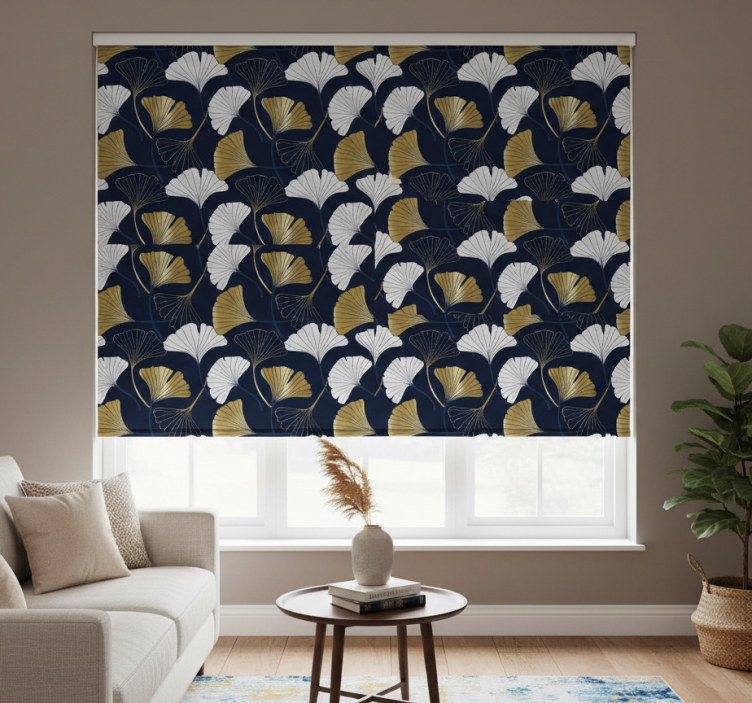Cortina roller moderno hojas de ginkgo en relieve
