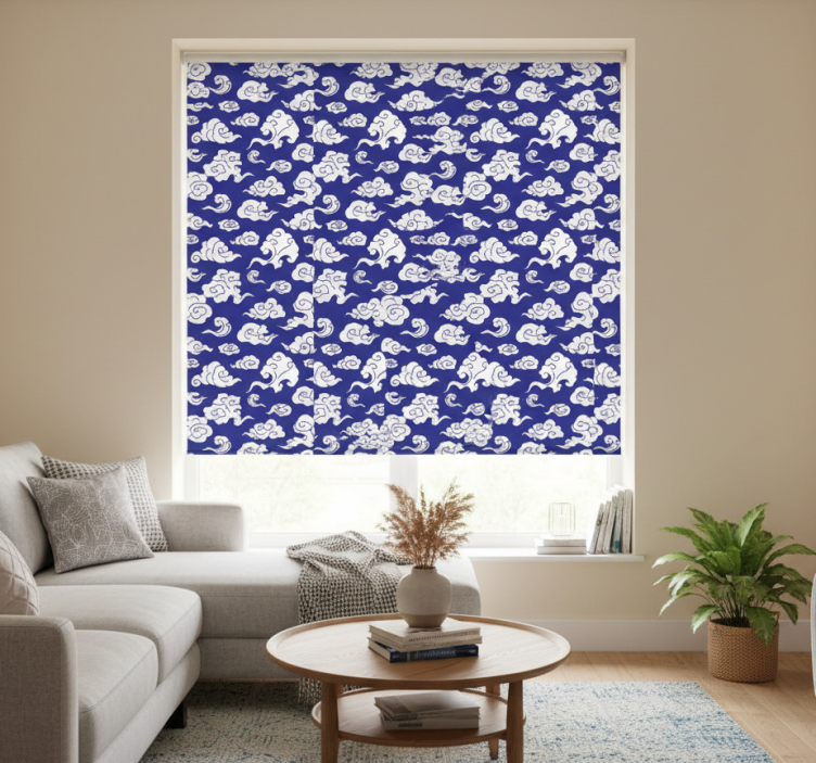 Cortina roller moderno nubes blancas en fondo azul