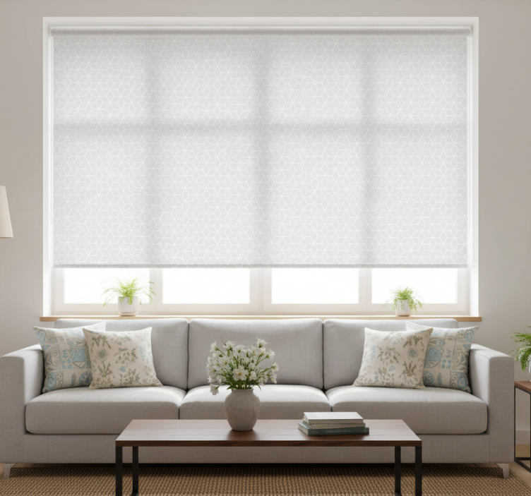 Cortina roller moderno paralelogramos y hexágonos grises