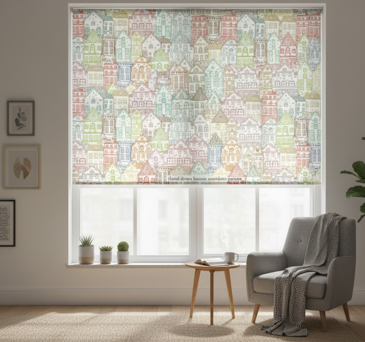 Referencia: E7820Descubre la elegancia y modernidad de la Cortina roller moderno patrón de casas dibujadas a mano, un diseño único que aporta un encanto especial a cualquier habitación. Con un patrón encantador de casas dibujadas a mano, estas cortinas se convierten en un elemento decorativo que no solo embellece el espacio, sino que también refleja tu estilo personal. Su diseño gráfico es fresco y atractivo, ideal para quienes buscan un toque de creatividad en su hogar.