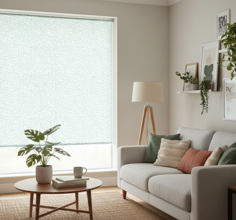 Cortina roller moderno patrón natural verde y blanco
