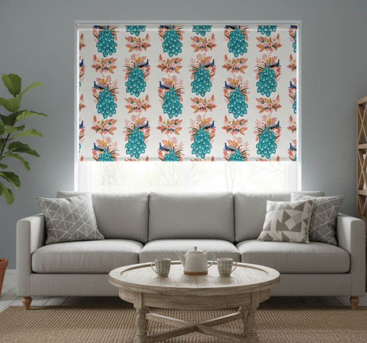 Cortina roller moderno pavo real azul hermoso