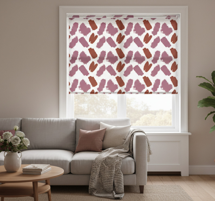 Cortina roller moderno salpicadura de pintura rosa y roja