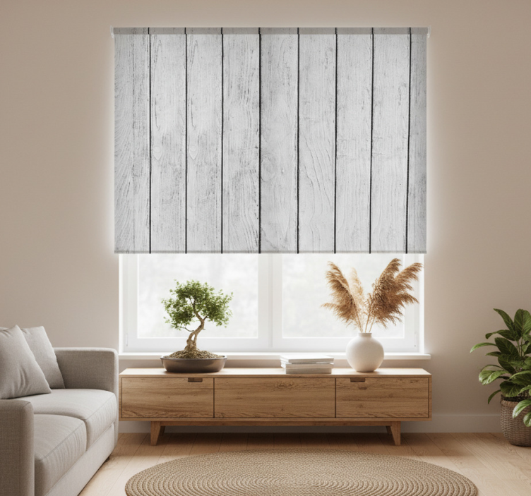 Cortina roller moderno tablones blancos estilo japandi