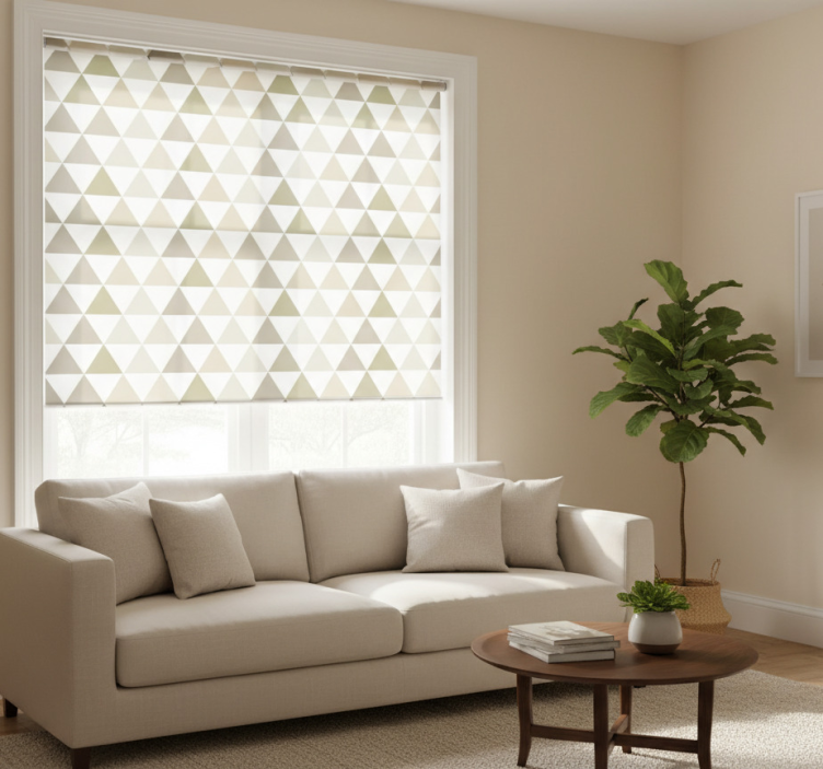Cortina roller moderno triángulos en tonos beige