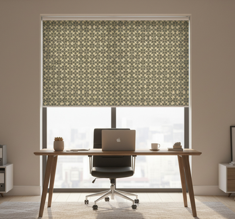 Cortina roller oficina patrones dorados lujosos