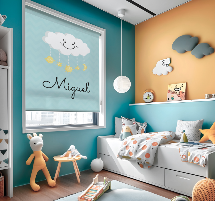 El Estor de nubes estilo feliz es la elección perfecta para darle un toque de alegría y originalidad a cualquier habitación. Su diseño personalizado con nubes y estrellas lo convierte en un elemento único que brinda calidez y felicidad a cualquier espacio. ¡Transforma tu hogar en un lugar mágico y acogedor con este estor único!Cómo instalar este producto