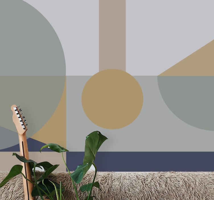 Descubre el Mural abstracto organización de formas geométricas, una obra de arte moderno que combina formas y círculos en un diseño abstracto y geométrico. Este mural no solo embellece tu espacio, sino que también aporta un toque de sofisticación con sus líneas elegantes y su paleta de colores mate, creando un ambiente único y estimulante.