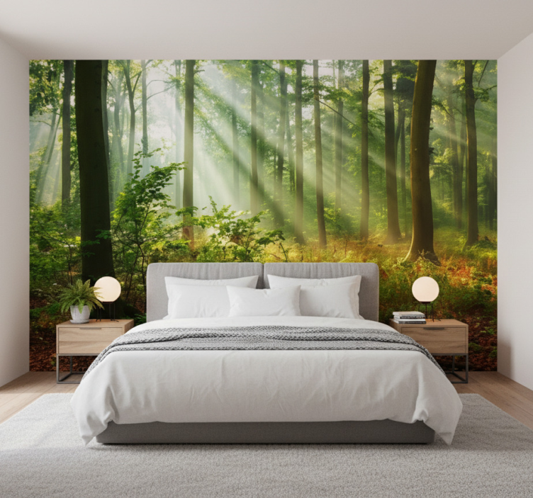 Para disfrutar del Mural de bosque mural de bosque luz natural en el bosque, simplemente aplica cola sobre la pared o el mural, utilizando herramientas como un rodillo, una brocha y un cepillo. Con un cúter, puedes ajustar el mural a tus necesidades, logrando un acabado perfecto que hará que tu hogar brille con la belleza de la naturaleza.