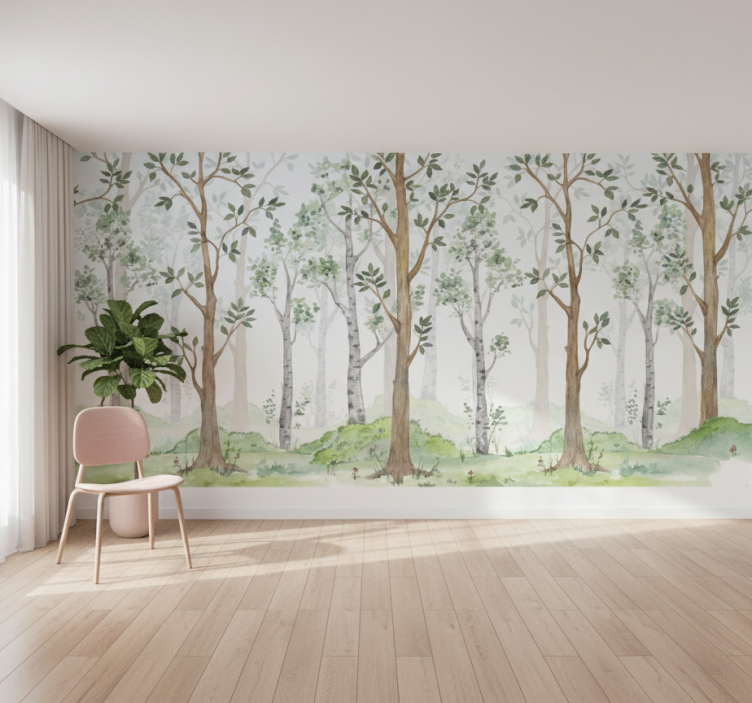 Mural de bosque pastel brisa del bosque