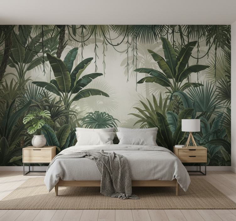 El Mural de bosque mural de bosque retiro retro en la jungla es perfecto para aquellos que desean dar un toque único y acogedor a su hogar. Imagínate rodeado de la magia de un bosque tropical, donde cada día se siente como una escapada a la naturaleza. Este mural no solo embellece tu espacio, sino que también inspira paz y relajación, convirtiendo cualquier habitación en un verdadero santuario. ¡Déjate envolver por su encanto y transforma tu hogar en un oasis personal!