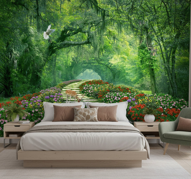 El Mural de bosque sendero surrealista en el bosque es ideal para aquellos que desean dar un giro a su hogar. Su diseño envolvente crea una atmósfera mágica, perfecta para inspirar calma y creatividad en cualquier habitación. Imagina despertar cada día rodeado de un paisaje que te invita a soñar y explorar. Este mural no solo decora, sino que transforma, convirtiendo tus espacios en verdaderas obras de arte que reflejan tu personalidad y estilo de vida.
