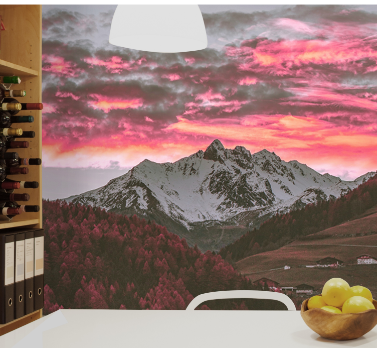 Un Mural de montañas atardecer impresionante en la montaña no solo embellece tu hogar, sino que también inspira paz y tranquilidad. Imagina entrar a una habitación decorada con este mural y sentir como si estuvieras en la cima de una montaña, rodeado de la majestuosidad de la naturaleza. Es el toque perfecto para transformar cualquier espacio en un refugio personal lleno de serenidad y estilo.