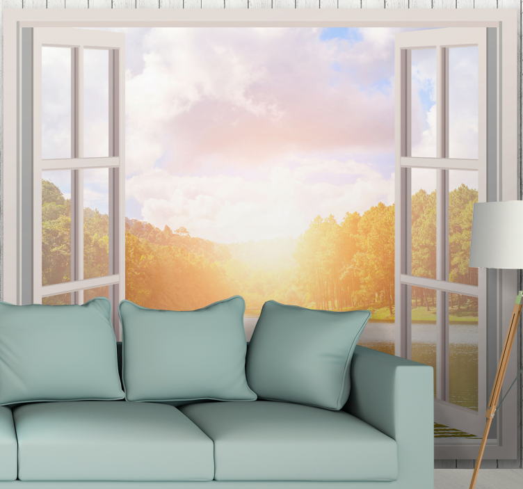 El Mural de naturaleza amanecer sobre el lago es una obra maestra visual que transforma cualquier espacio en un refugio de calma y belleza. Con una impresionante ventana que ofrece una vista panorámica de un atardecer en el corazón de un bosque, este paisaje evoca la serenidad de la naturaleza. La técnica del trampantojo permite que el lago y los árboles se sientan tan reales que casi puedes escuchar el murmullo del agua. ¡Despierta cada mañana con la magia de un amanecer que te conecta con el mundo natural!