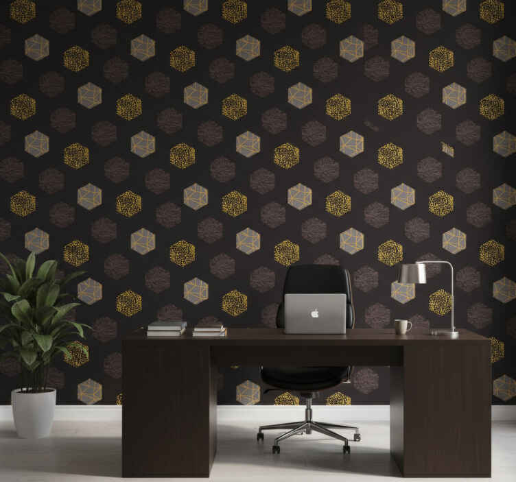 Papel tapiz oficina hexágonos dorados nórdicos