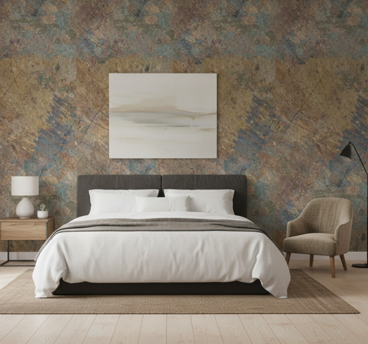 Papel tapiz recámara matrimonial efecto concreto industrial