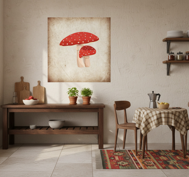 Incorporar este Poster cocina ilustración de hongo amanita en tu hogar es una decisión inspiradora. No solo embellece el entorno, sino que también despierta la curiosidad y la conversación entre tus invitados. Imagina tus comidas acompañadas de esta hermosa ilustración, creando un ambiente acogedor y lleno de vida. Es el toque perfecto para transformar tu cocina en un lugar único y especial.