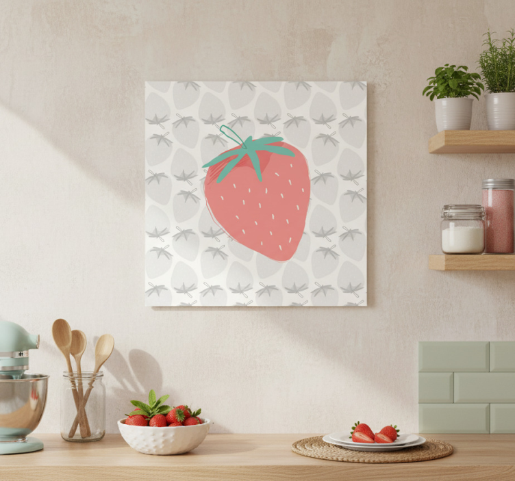 Referencia: G605Descubre la belleza de nuestra lámina decorativa: un poster cocina patrón de fresas en tonos pastel que captura la esencia de la frescura y el encanto. Con un diseño vibrante y alegre, este poster presenta fresas en suaves tonos pastel sobre un fondo que invita a la calidez y la creatividad. Su acabado semimate y alta intensidad de color hacen que cada detalle resalte, transformando cualquier cocina en un espacio acogedor y lleno de vida.