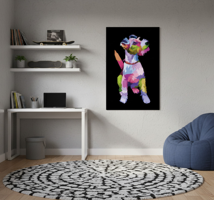 Transforma tu hogar con el Poster salón zorro terrier geométrico, una pieza que no solo decora, sino que también inspira. Este poster es ideal para quienes buscan un toque distintivo en su decoración, evocando la energía y la creatividad que solo un diseño tan singular puede ofrecer. Aporta un aire de modernidad y personalidad que hará que cada visita a tu salón sea una experiencia memorable. ¡Deja que tu espacio hable de ti!