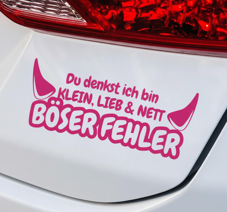 La Pegatina coche mal error diablo rosa es la opción ideal para quienes desean destacar en la carretera. Su diseño audaz atraerá miradas y sonrisas, convirtiendo cualquier trayecto en una experiencia divertida. Decora tu coche con esta pegatina y expresa tu estilo personal de una manera original y creativa. ¡Haz que tu coche cuente una historia!