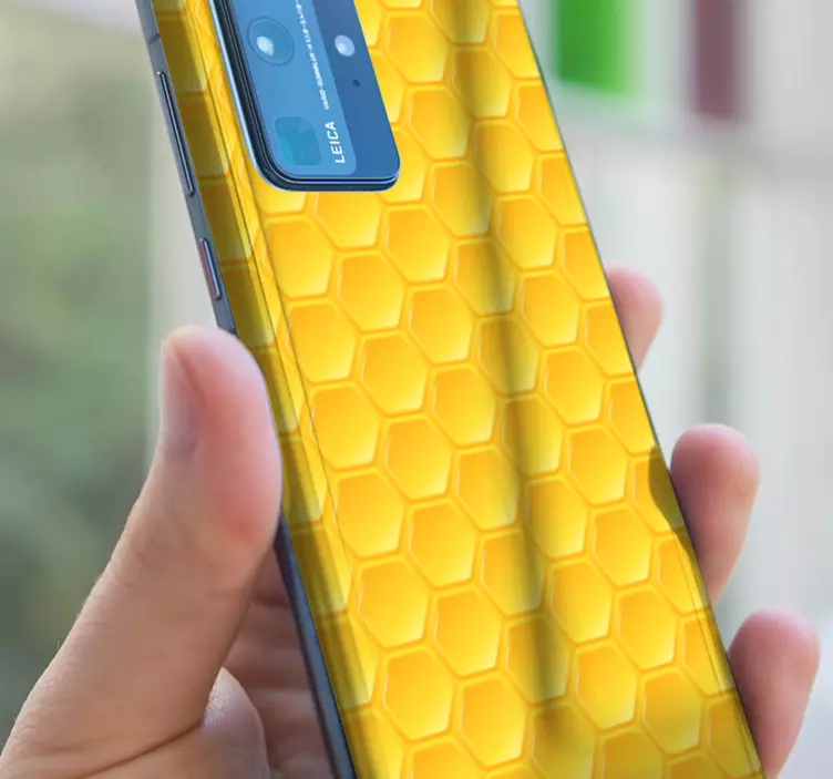Descubre nuestra Pegatina Huawei diseño de panal, un producto que transforma tu teléfono con un hermoso estampado de hexágonos que recuerda a una colmena. Este diseño en tonos amarillos presenta una textura hexagonal cautivadora que no solo embellece tu móvil, sino que también lo protege. Con un acabado satinado, esta pegatina evita reflejos mientras resalta la intensidad de sus colores, asegurando que tu dispositivo luzca espectacular en cualquier iluminación.