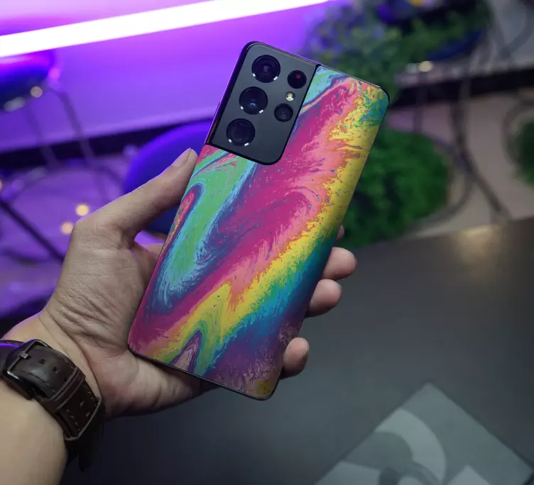 Descubre la Pegatina samsung remolino fluido colorido, un adhesivo vibrante diseñado para transformar tu móvil con un estilo único. Este impresionante diseño gráfico combina elementos de celda y mármol en un colorido arcoíris que da vida a tu dispositivo. Con un acabado que evita reflejos, podrás disfrutar de su intensidad de color tanto en interiores como en exteriores. Dale a tu teléfono un toque personal y atractivo que no pasará desapercibido.