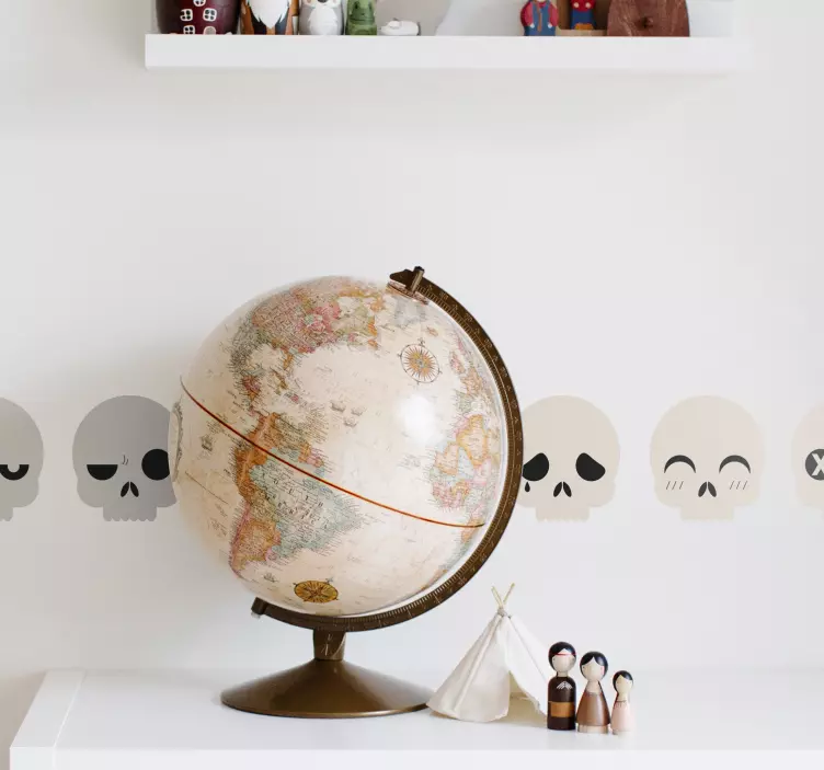 Descubre el encanto del vinilo caras de calavera juguetonas, un diseño que cautiva con sus divertidas calaveras piratas. Este producto presenta un estilo juguetón y expresivo, ideal para quienes buscan una decoración decorativa y única. Con su cenefa y frontera de personajes piratas, cada calavera aporta un toque de alegría y carácter a tus espacios, convirtiendo cualquier ambiente en un festín visual.