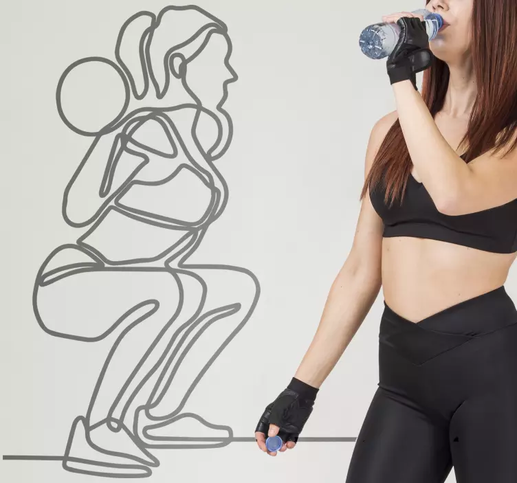 Este vinilo deporte pose de fitness dinámico presenta un diseño cautivador que representa a una mujer en movimiento, mostrando su fuerza y determinación en el gimnasio. Con un estilo artístico en arte lineal, este dibujo evoca la pasión por el ejercicio y la aptitud física, inspirando un estilo de vida saludable y activo. Es perfecto para aquellos que quieren rodearse de motivación mientras se ponen en cuclillas y se entregan al deporte.