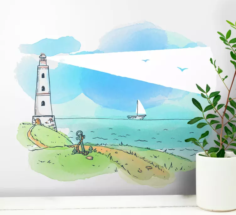 Descubre la belleza del vinilo escena de faro costero, una impresionante ilustración que captura la esencia de la navegación en el océano. Este diseño presenta un majestuoso faro, rodeado por el vasto mar y una playa tranquila, evocando la naturaleza en su máxima expresión. Con cada detalle, este paisaje invita a soñar con rutas marítimas y momentos de paz en la costa.