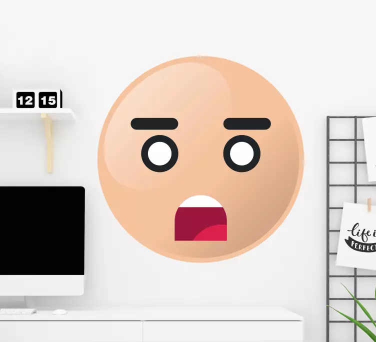 Descubre el vinilo expresión facial asombrada, una pieza decorativa que captura la esencia de la sorpresa en su máximo esplendor. Con un diseño conmocionado, este emoticono refleja un rostro lleno de asombro y emoción, presentando diferentes caras y caracteres que brindan una reacción divertida y vibrante a cualquier espacio. Este vinilo es perfecto para aquellos que desean añadir un toque único y alegre a su hogar o lugar de trabajo.